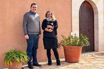 Helena Haarlammert begrüßt Sie herzlich auf der Finca Cas Cuni. Hier ist sie mit Reinhard Randoll vom Auf nach Mallorca Team zu sehen.