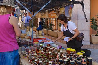 Beschreibung: hier gibt es Lederwaren, Souvenirs, Bekleidung, Kleintiere, Gemüse & Obst. Der Markt zieht sich von der Calle Portugal bis hoch zur Kirche.